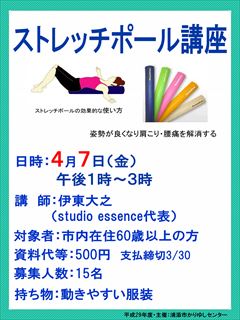 平成29年4月7日(金曜日)伊東大介(Studio essence代表)による「ストレッチポール講座」