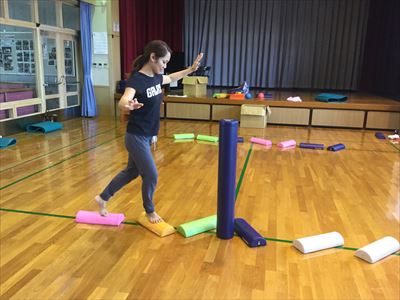 金子先生の お手本です。 ストレッチポールの上を上手に歩いていました。