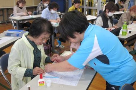 かりゆしセンター職員の棚原順子さんの指導により、干支(午)の折り紙を作りました。